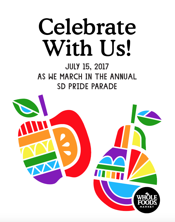 Designs, shirts, and parade floats created to represent WFM for SD Pride 2015, 2016, 2017